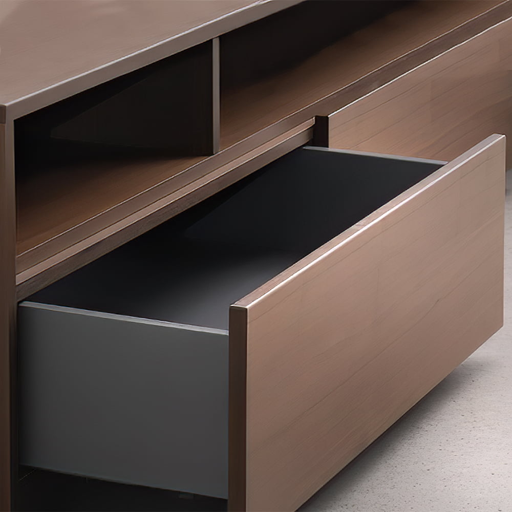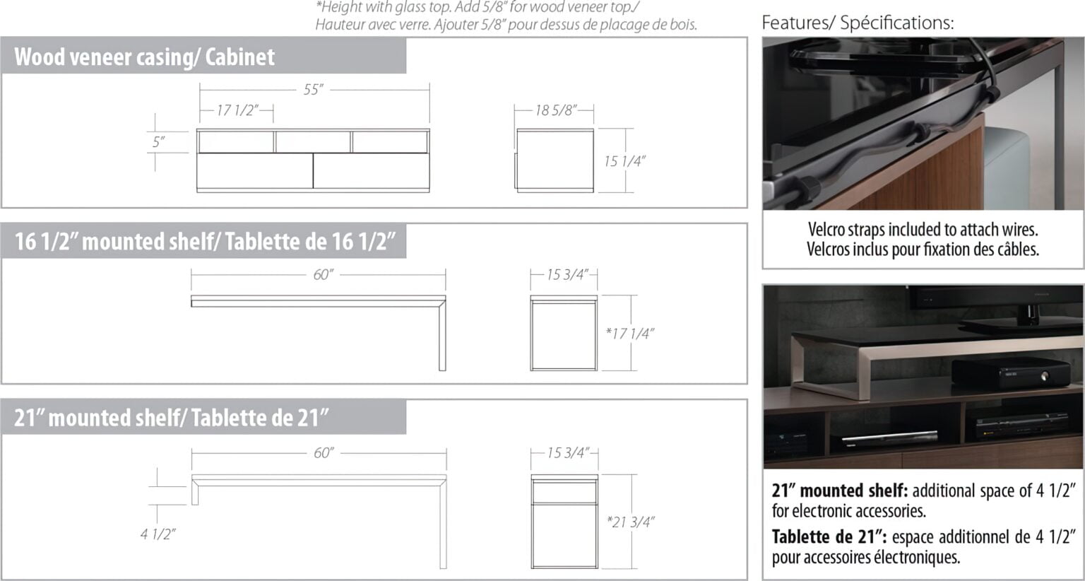 Designed and manufactured in Canada, the Bô Extendable Media Console features a durable metal frame topped with an elegant movable shelf available in glass, porcelain, or wood. The wood veneer cabinet provides practical storage space for electronics and other items. This unit brings a modern touch to your home. Its unique asymmetrical design not only catches the eye but also provides practicality with two handle-free drawers featuring a soft-closing mechanism—great for a smooth and tidy finish. Plus, the extendable function means you can easily adapt it for movie marathons or dinner parties, making it the perfect companion for any occasion.