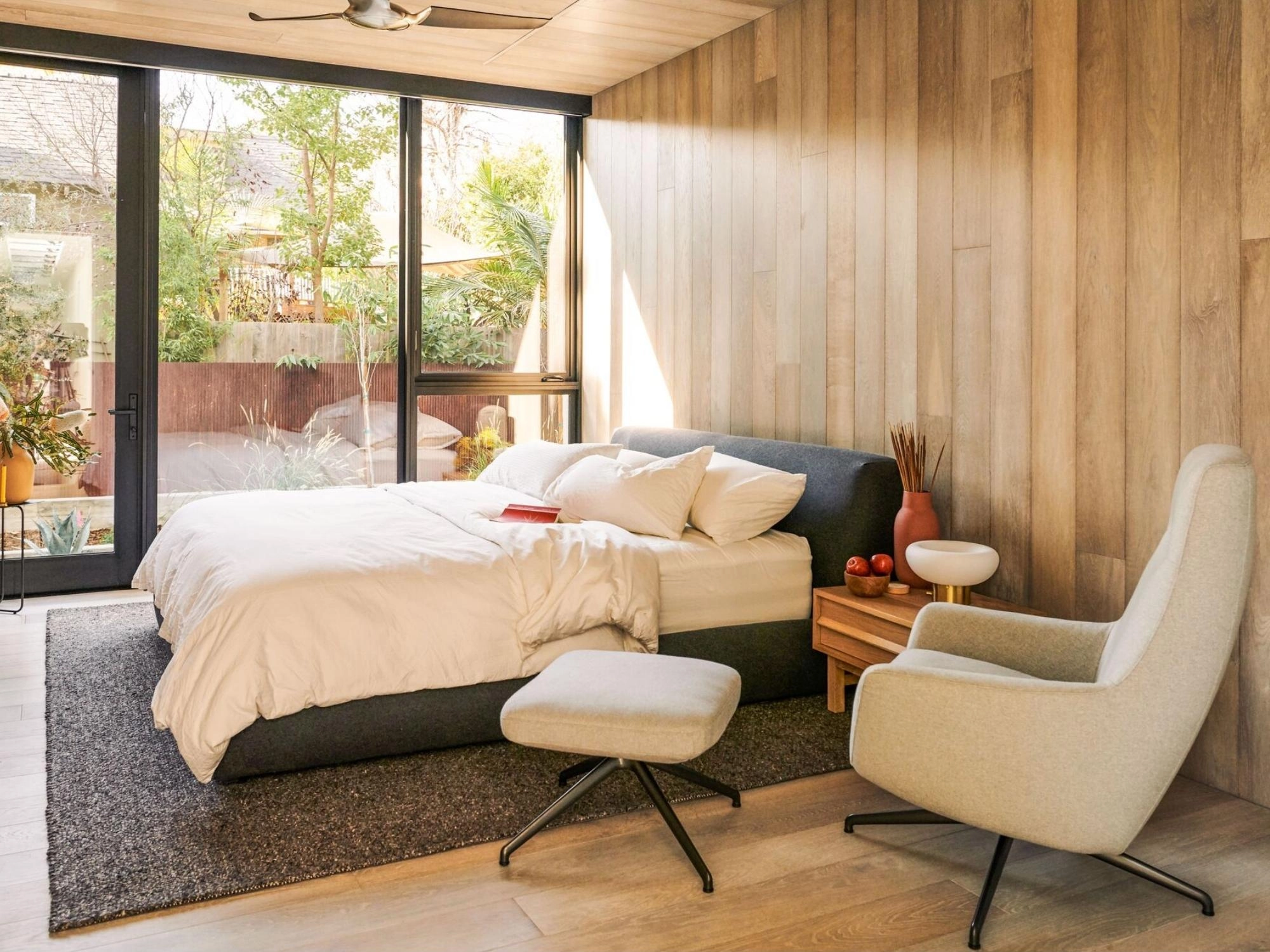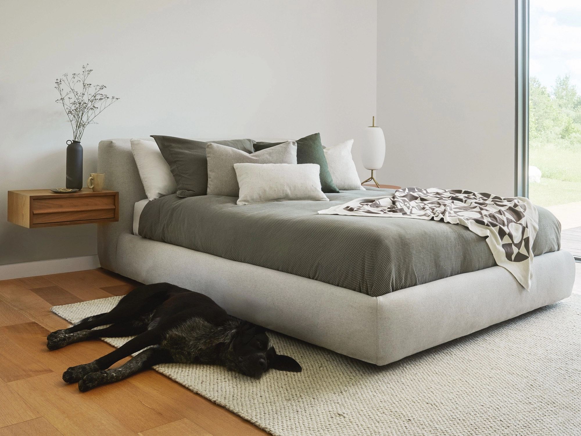 The strong architectural lines of the Cello Upholstered Bed are softened by its sophisticated structure. Inspired by the cello instrument, this bed is equally as full-bodied with sculptural curves. The headboard is softly padded, perfect for resting against while reading a favourite book.