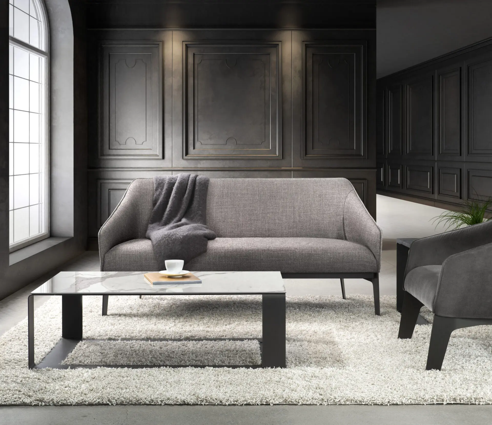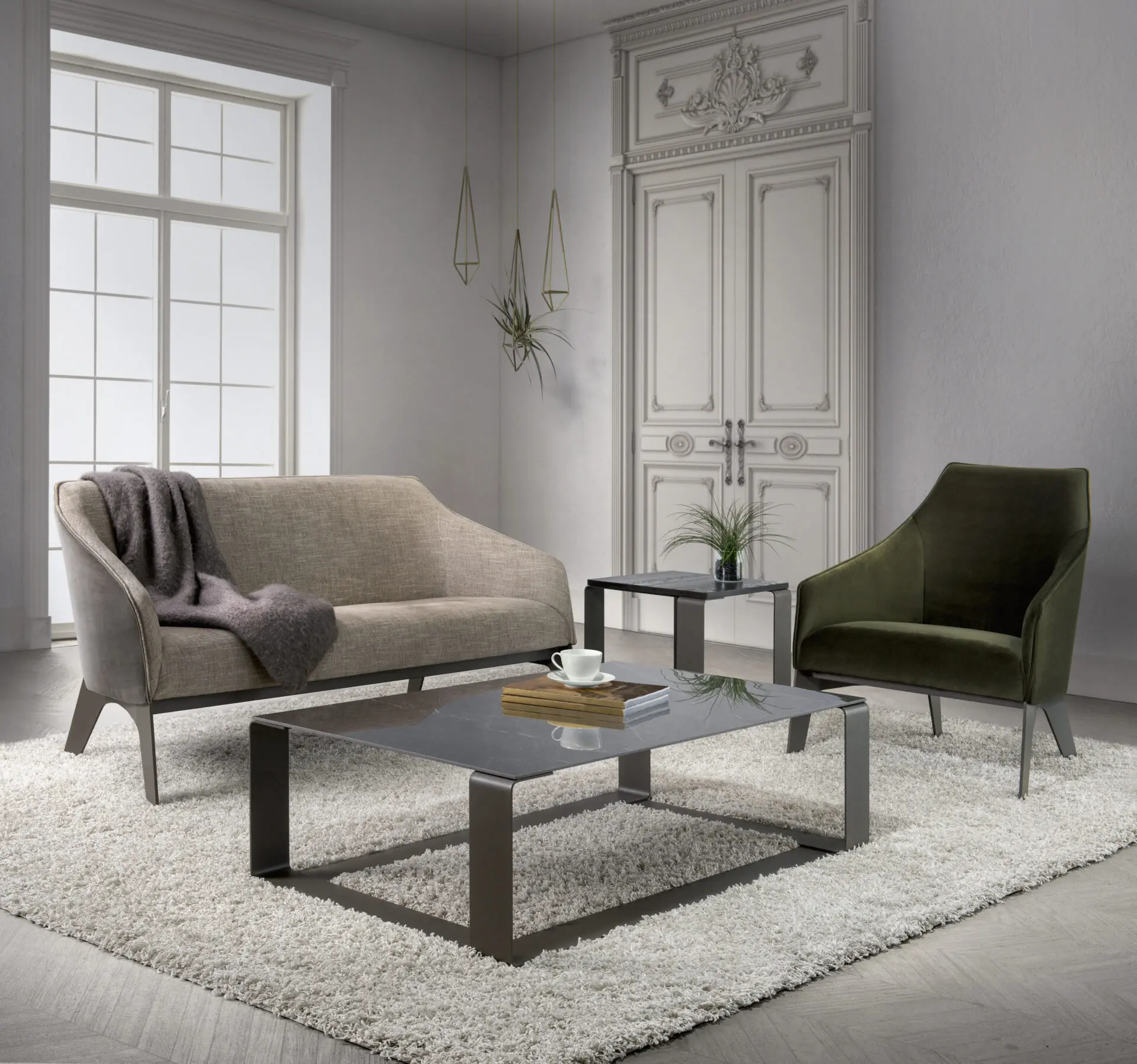 The Fusion table collection offers a minimalist and modern style, with a fully welded steel base. The tops are available in glass, wood veneer, solid wood or porcelain, in three different sizes, including a console version, to integrate harmoniously into various living spaces.