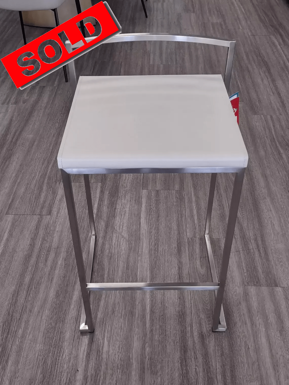 This set includes 4 modern, sculptural minimalistic and luxurious bar stools boasting a sleek modern design. The slender frame is light and functional. From seat back to foot rest, each component is purpose built embodying modern sophistication and low back construction made with recycle leather upholstery.  These stools will add comfortable seating to any kitchen island or home bar.