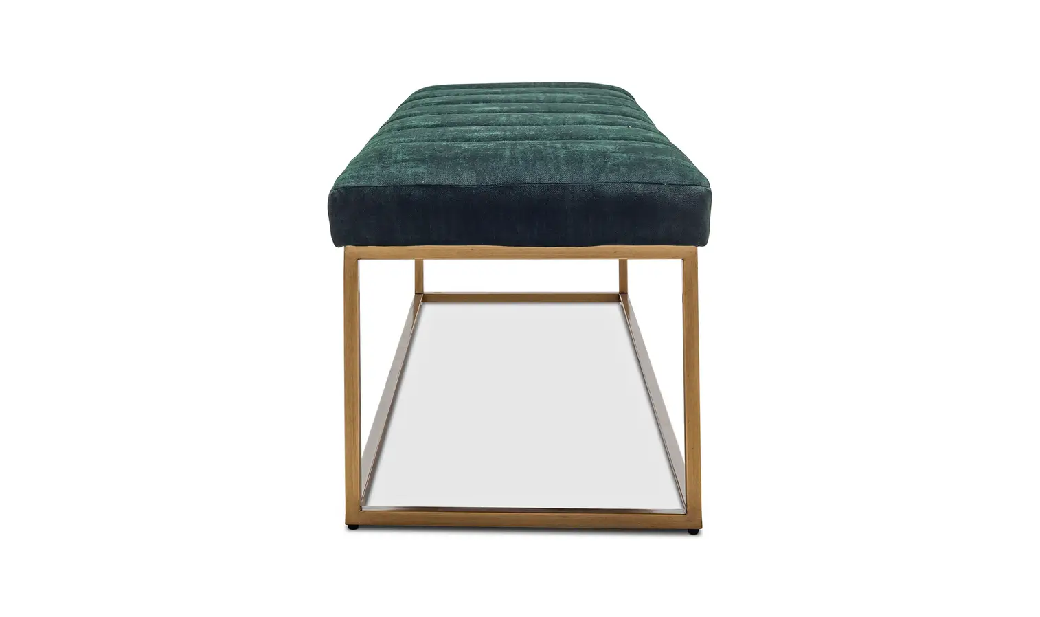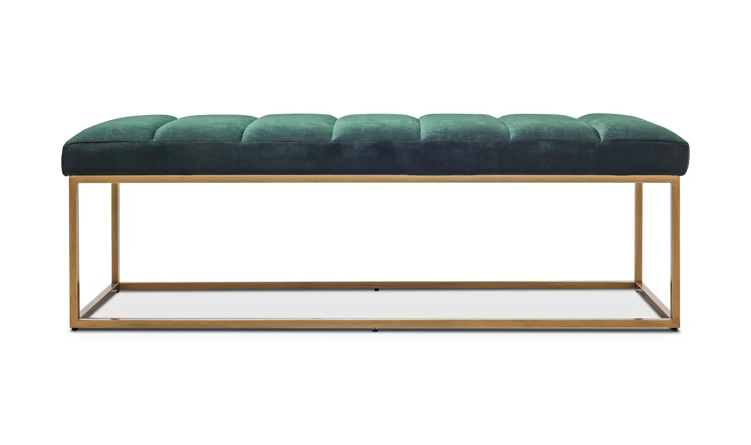 Sit down and relax on this modern classic. With plenty of seating room, the Katie bench offers foam padding, soft upholstery, and Pirelli webbing to ensure maximum comfort. A velvet finish and antique brass frame give it a retro look that blends seamlessly with different design schemes. A showstopper for entranceways.