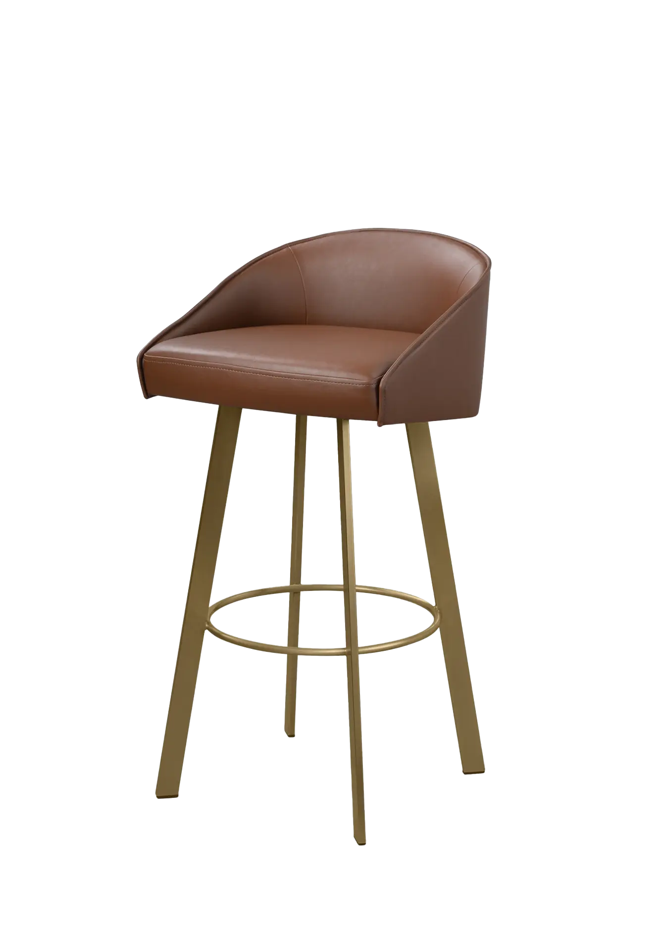 The Liv stool, with its chic and functional look, features a solid base and an enveloping seat. Available in two heights, this swivel model combines a sturdy welded frame with comfortable resilient foam padding and fabric customization options for seamless integration into any interior decor.