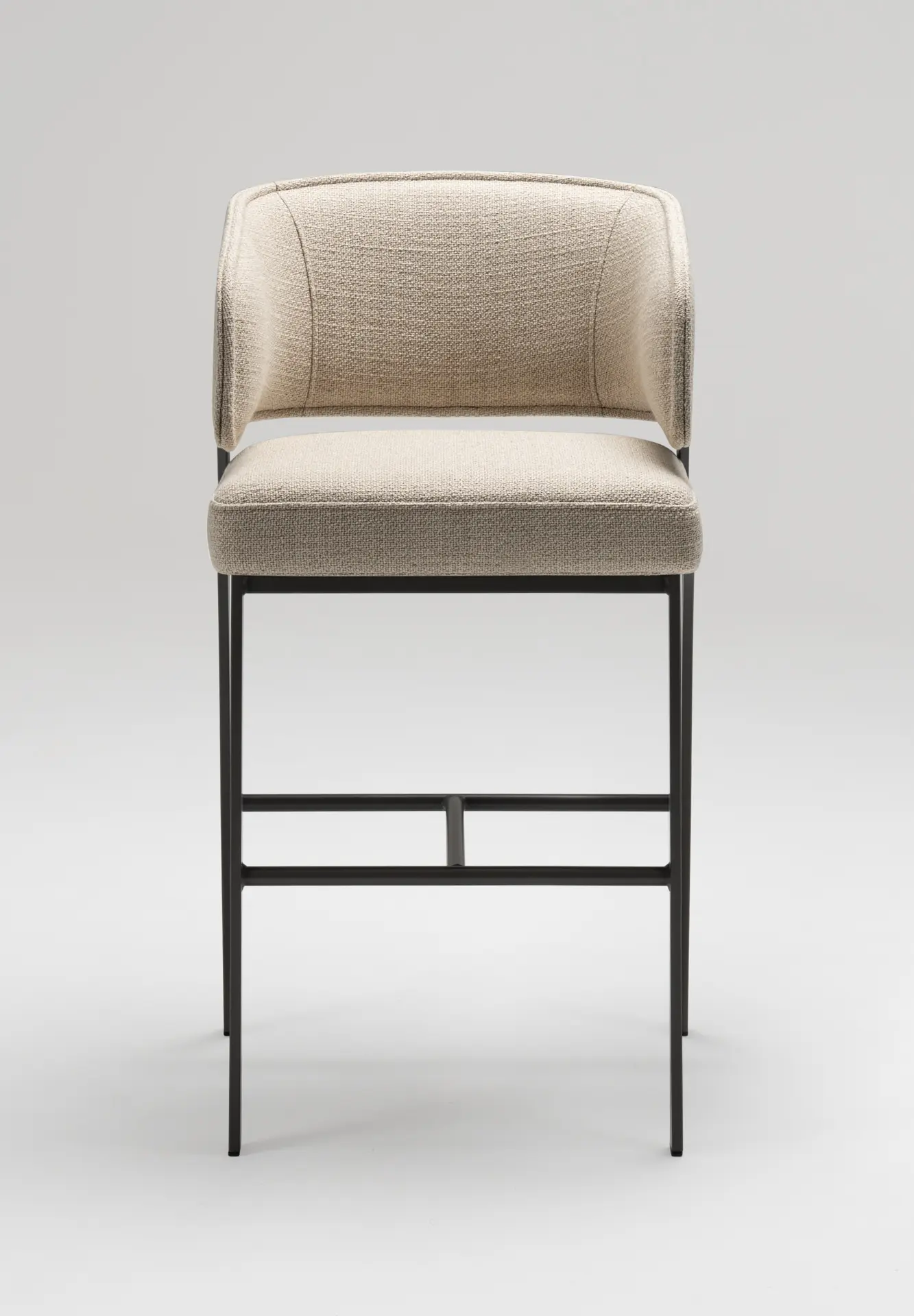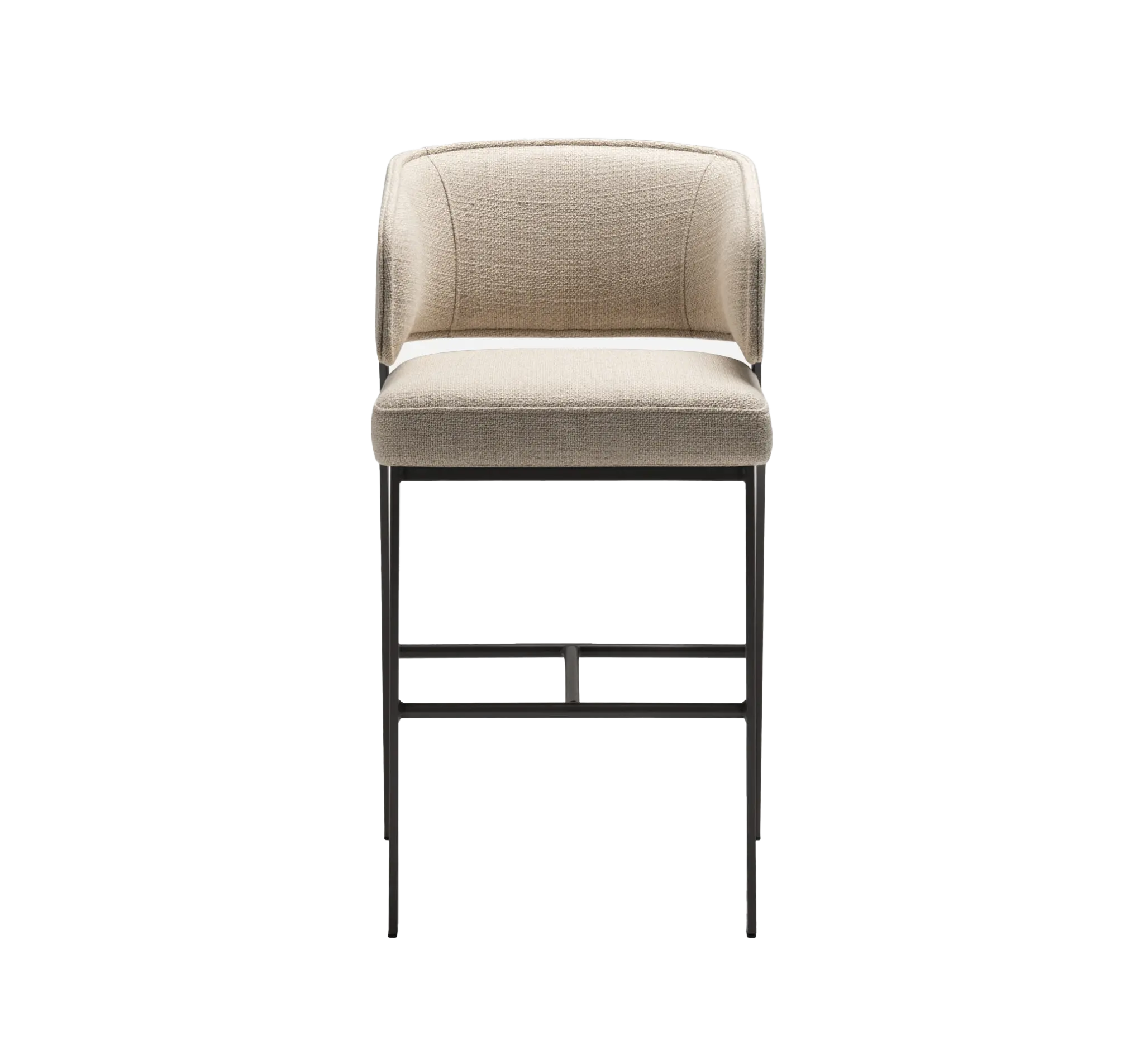 The Madison stool features a contemporary style with clean lines and a minimalist structure. This enveloping stool has short armrests integrated into the extension of the backrest. The slender, straight legs give it a robust yet delicate appearance without compromising comfort.