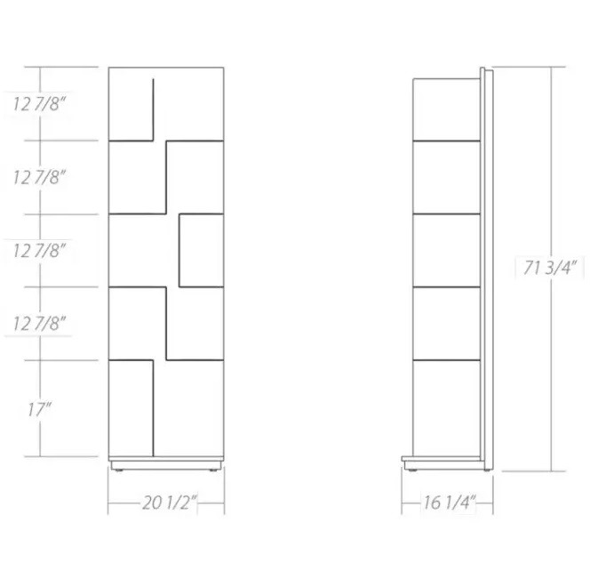 Dimensions: 20.5”W x 16.25”D x 71.75”H