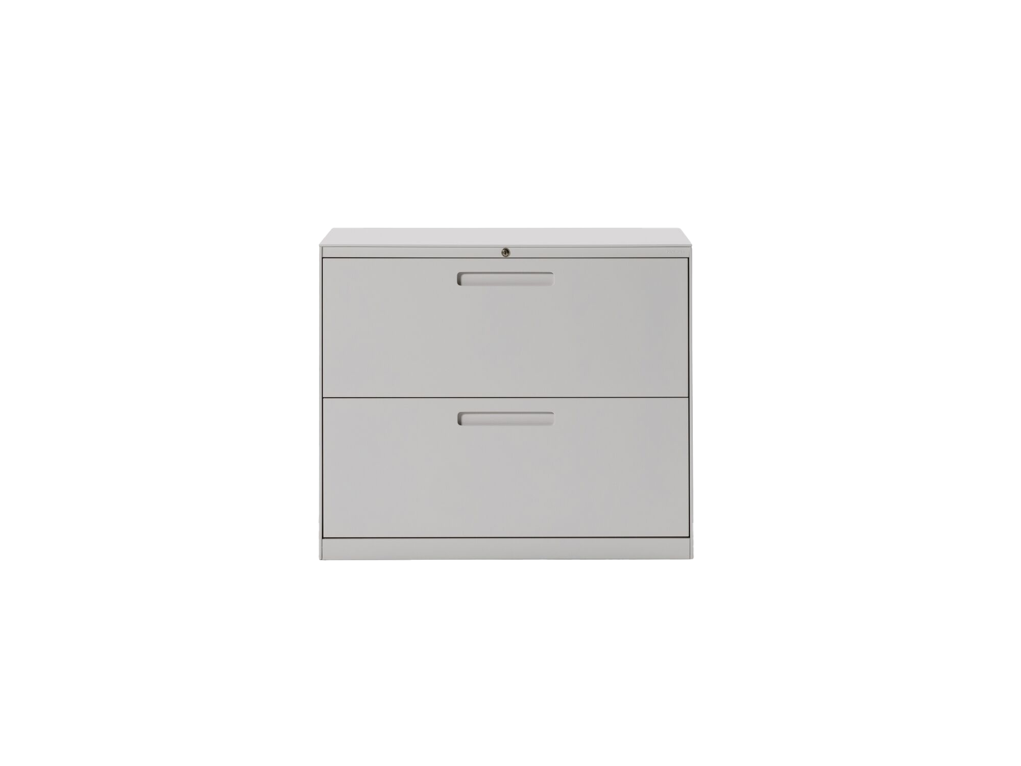 The Novah two-drawer filing cabinets provide file storage in a durable, metal powder-coated finish with both full-extension drawer glides and a locking mechanism allowing only one drawer to be opened at a time, for both safety and to prevent tipping.