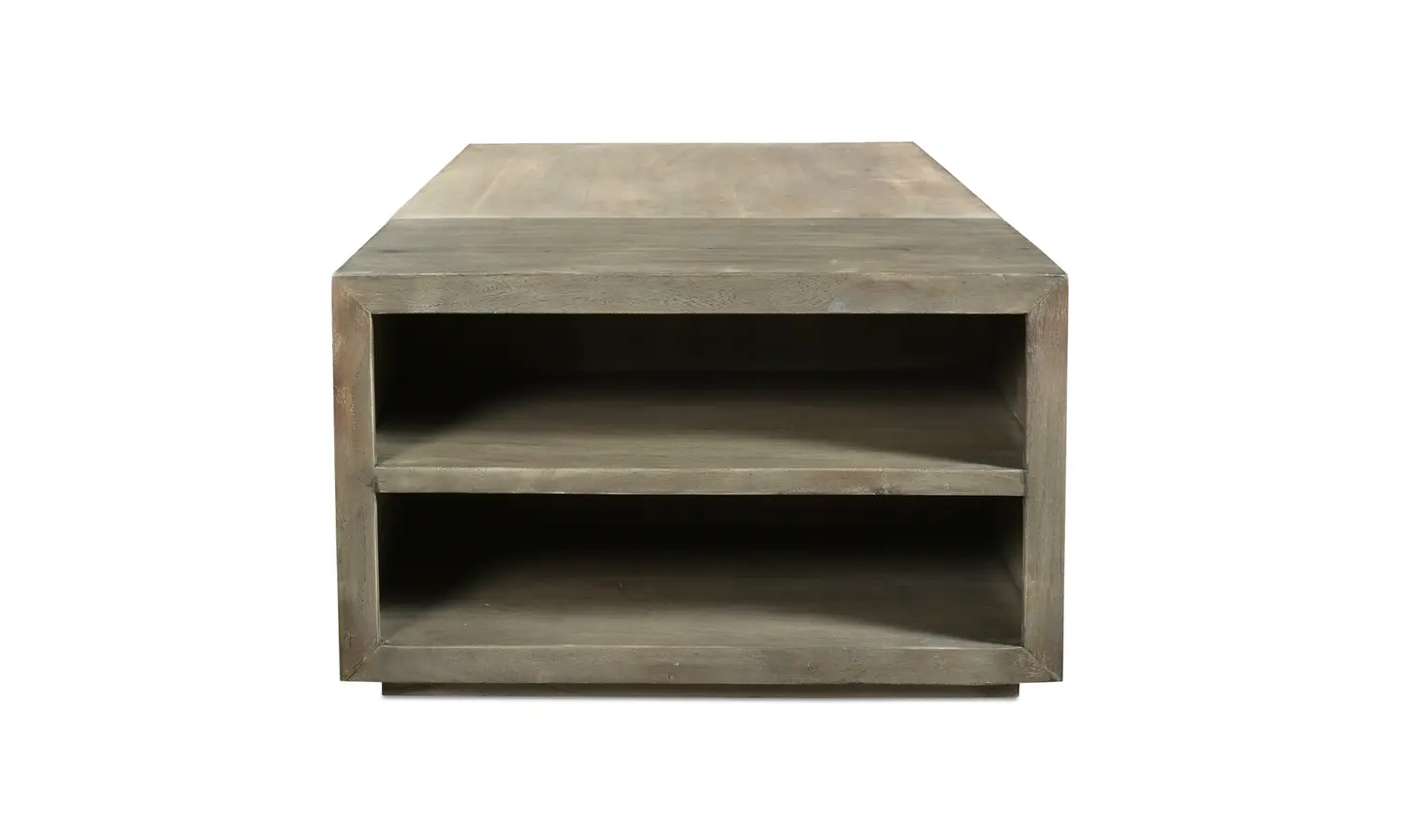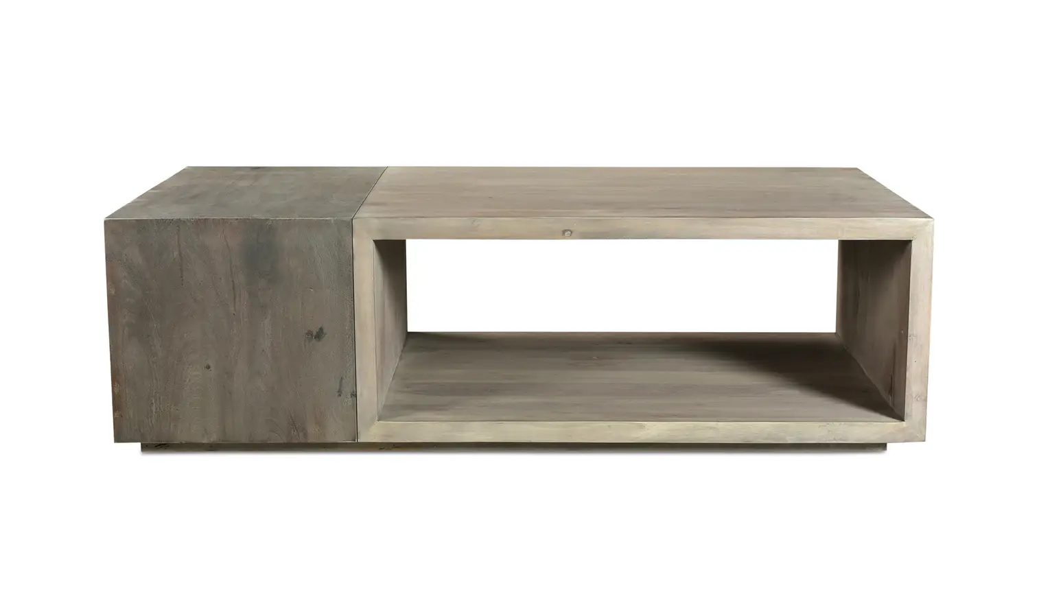 The Timtam Coffee Table features a plethora of storage options to keep your living room clean and organized. Made from solid acacia wood, the piece features a light cloudy and metal grey finish, giving it depth within its space. Truly another fine example of cubism aesthetic.