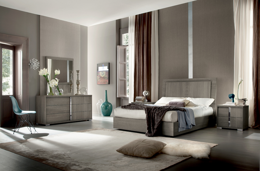 The Tivoli collection is a contemporary marvel, featuring the innovative Grey oak eco veneer texture. This range, comprising a bed, dresser, bedside tables, tall chest of drawers, and mirror, brings the warmth of wood to your bedroom in an environmentally friendly way. The collection is characterized by chrome metal handles that enhance its modern, linear design. The bed, available in multiple sizes, features a structured geometric headboard with the option to add lights for functionality and style.